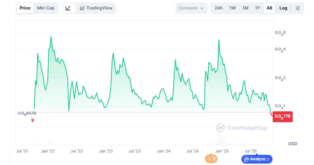 با توجه به این پیشبینی سایت coincodex، احتمالاً بازدهی این ارز نسبت به قیمت فعلی در سال 2030 حدود ۱۷.۱۴٪ منفی خواهد بود.